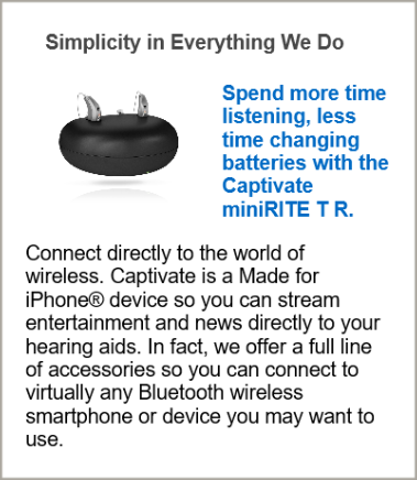 Offering a range of products, Widex has recently released their own line of rechargeable options along with a plethora of hearing aids that pair with wireless devices. Their Made for iPhone® hearing aids allow wearers to stream podcasts, music, and phone calls with ease, and their latest CUSTOM™ design provides optimal comfort and impeccable sound quality.